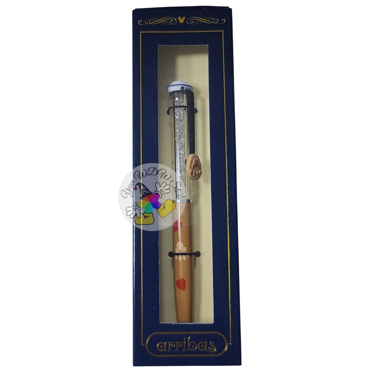 Duffy the Disney bear has left his paw prints all over this personalizable pen. Created by the renowned Arribas Brothers, it features his paw as the clip, his name on the cap, and clear crystals in the barrel to add extra sparkle.