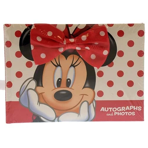 Minnie Mouse poses with her bow for this Walt Disney World Autograph Book and Photo Album, perfect for collecting signatures during your Magic Kingdom visit. With raised ribbon tied into a bow and Minnie Mouse with her cute face smiling at you, you are sure to get all the signatures you desire with this delightful autograph and photo book.