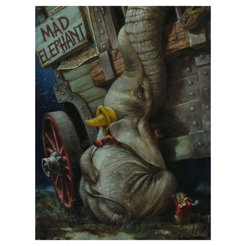 Mrs. Jumbo wraps her trunk lovingly around the ”Baby of Mine” in this heart-wrenching work by Heather Edwards. Inspired by Walt Disney’s beloved Dumbo, this limited edition giclée on canvas comes gallery wrapped and includes a certificate of authenticity.