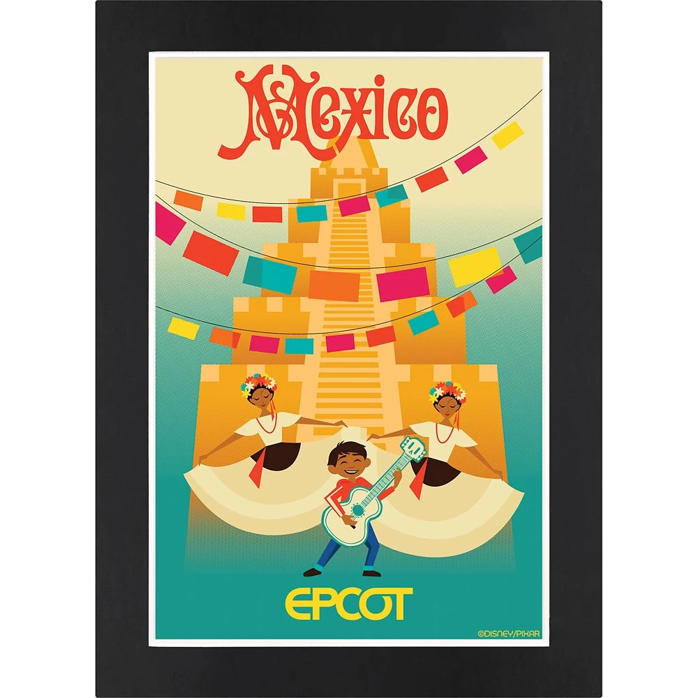 The Mexico Pavilion is a blend of the three major eras that have shaped the country—the pre-Columbian period, the Spanish-Colonial period and modern Mexico. Created by artist Stacey Aoyama, this print showcases the pavilion’s iconic Mesoamerican pyramid and Miguel, the lead character from the Disney and Pixar’s animated film set in Mexico, Coco. The characters of Coco help tell the story of DÃa de Muertos in the current gallery exhibit inside the pavilion.