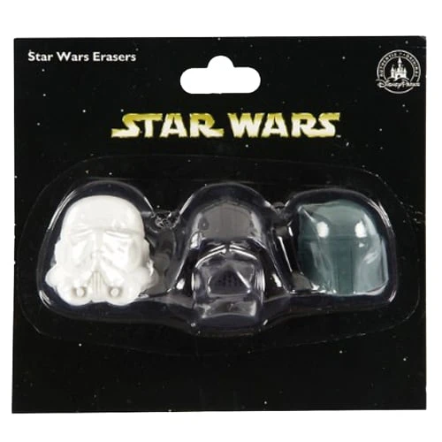 - Star Wars eraser character pack includes Darth Vader, Storm Trooper, and Boba Fett