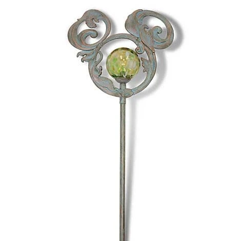 Landscape your garden with the magic of the mouse. The Mickey Mouse Garden stake places a brilliant glass globe within a filigreed Mickey-icon frame, all on a copper tone stake to enchant your yard with Disney welcome and wonder.