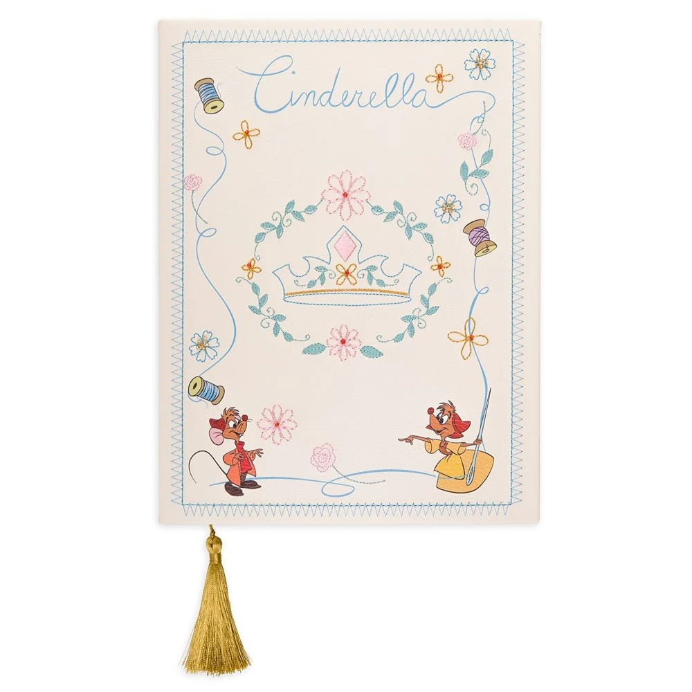 If Cinderella had a real-life ”handmade” journal, this is just what it would look like. Hardbound storybook styling features Jaq and Suzy on front, with embroidered, stitched and beaded accents, plus golden tassel bookmark.