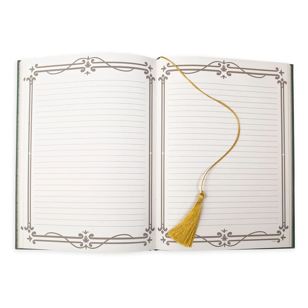 If Tiana had a real-life journal, this is just what it would look like. Hardbound The Frog Prince storybook styling–as seen in the film–with fabric cover and golden foil art, plus golden tassel bookmark.
