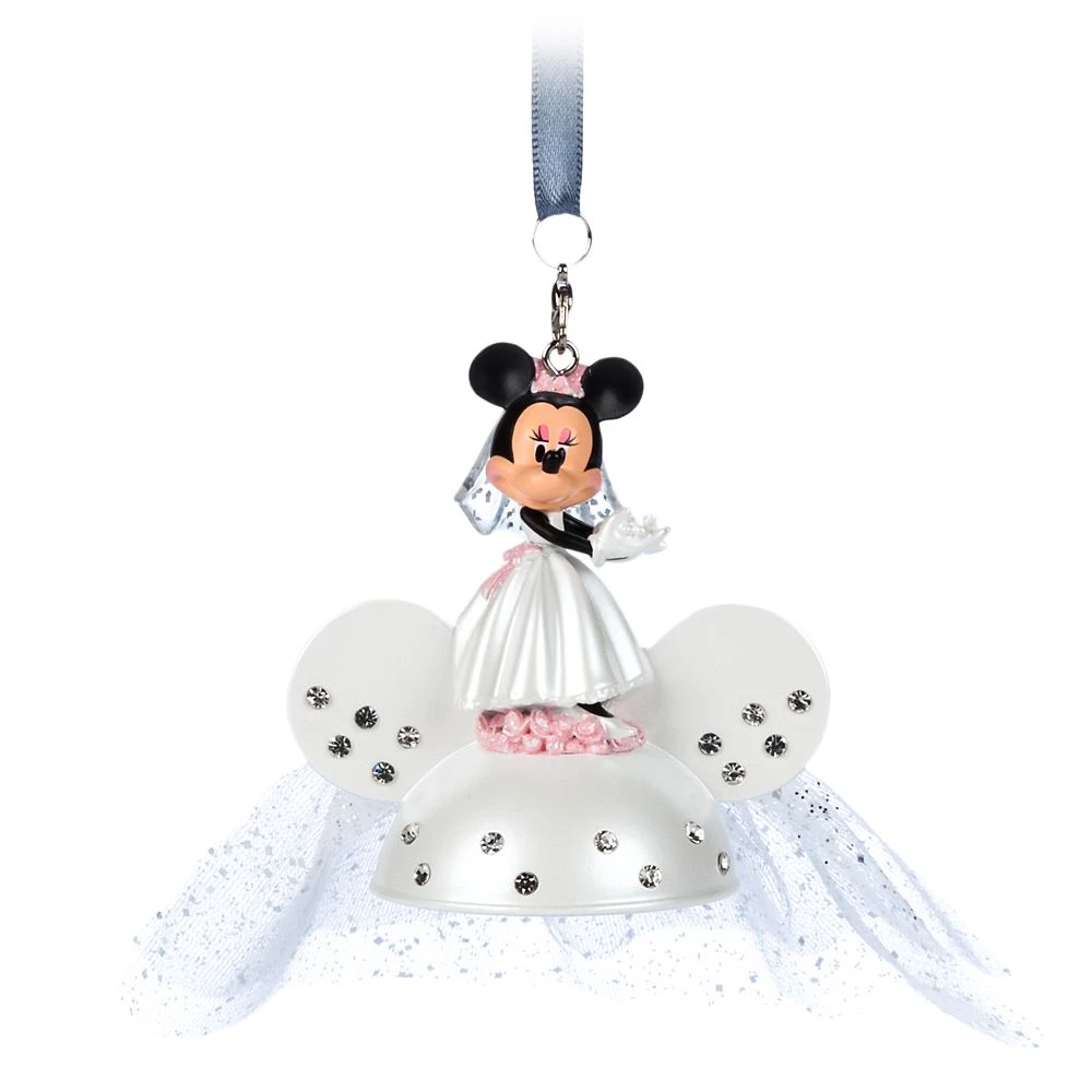 Here comes the Bride! Place Minnie’s glittering, gem-studded ear hat ornament with sculpted figure topper and tulle veil on display or save it away to treasure that special day. Find an ”ear-ternal” soulmate in Mickey’s Groom hat ornament, sold separately.