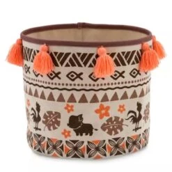 Add some island style to your home with this Moana Planter Cover. Pua and Hei Hei are silhouetted on the tapa print covering this cotton cover that’s designed to go around one of your pots. Bright orange tassels circle the rim, bringing renewed attention to a favorite plant.