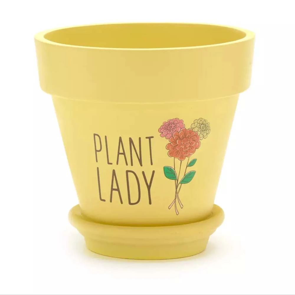 - Plant pot features ‘Plant lady’ wording and floral artwork