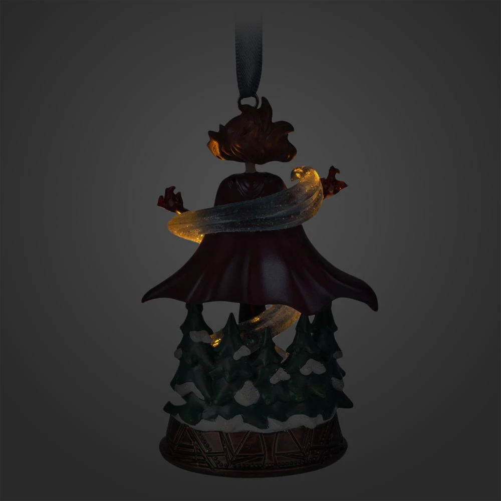 Summon a spell of enchantment this holiday season with Scarlet Witch. This fully sculpted holiday ornament features dramatic recessed lighting from the base that illuminates the translucent power trail surrounding our mistress of magic.