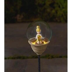 - Disney Solar Garden Stake Tinkerbell stands 31 inches tall and has a diameter of 3.75 inches. Create a world of Tinker Bells by buying several or choose from among the other Disney stakes to expand your outdoor fairytale (each stake is sold separately).