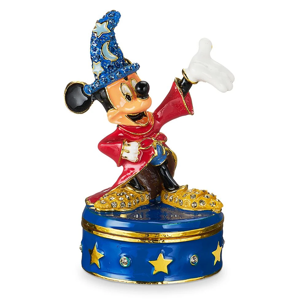 Sorcerer Mickey adds a magical touch to your collection of tiny treasured keepsakes. With high quality crystal stones, this trinket box by Arribas Borthers allows Mickey to shine in his famous costume from Walt Disney’s Fantasia.