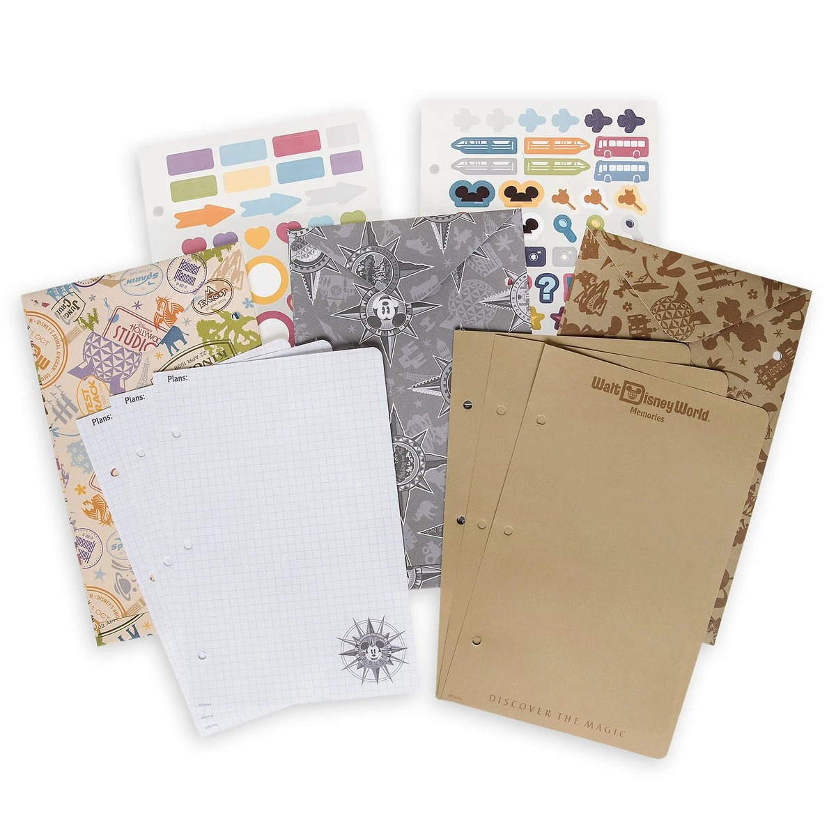 Plan your trip to Walt Disney World with stickers and pages. After your trip, scrapbook, journal and store your memories with themed pages and envelopes! A metal binder lets you move around your memories inside a Mickey binder.