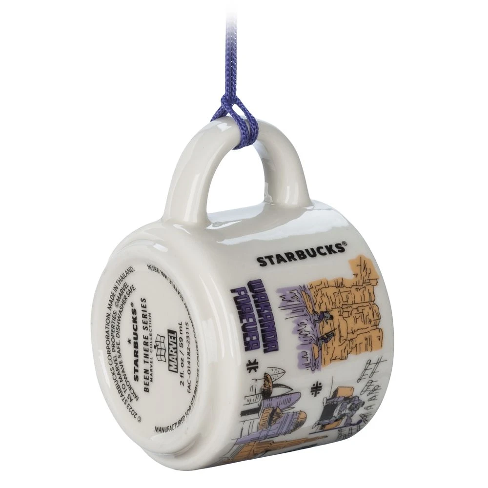 You’ll be excited to get your claws on this Wakanda Starbucks® Mug Ornament inspired by Black Panther: Wakanda Forever. Part of the popular Been There Series, this ceramic cup features some of the most iconic people, places and things that make the Kingdom of Wakanda the stuff of legend. With images of Mount Bashenga, the Black Panther mask, M’Baku, the Dora Milaje and more, it is sure to bring you back to Wakanda with every glance. Part of the Been There Series, it comes in a gift box and hangs on a removable string. Fun to display and, with a two-ounce capacity, it can serve up a mini yet mighty serving of your favorite brew. Yibambe!