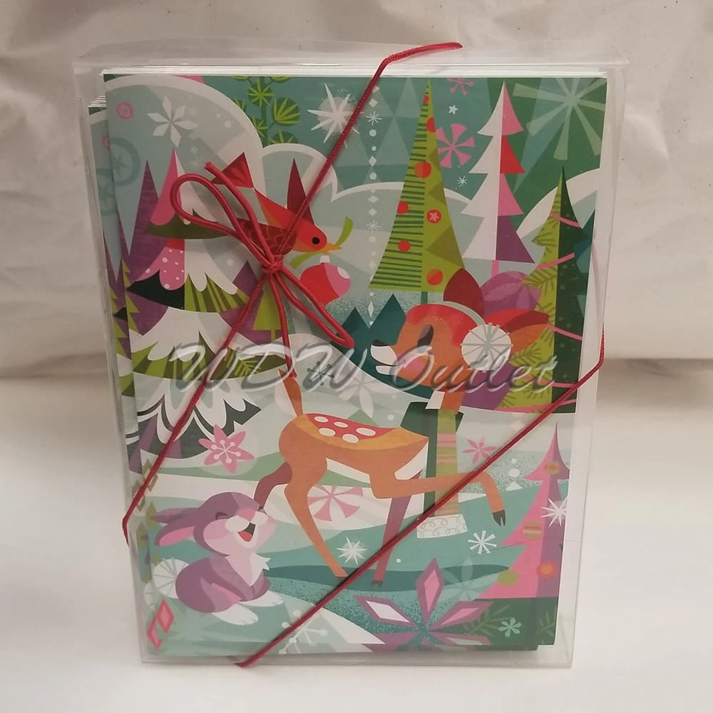 Celebrate Christmas with this new set of Disney character holiday cards created by Disney artist Jeff Granito. The characters include Mickey Mouse, Minnie Mouse, Bambi and Thumper and Dumbo. Each character is surrounded by Christmas trees and other holiday accessories.