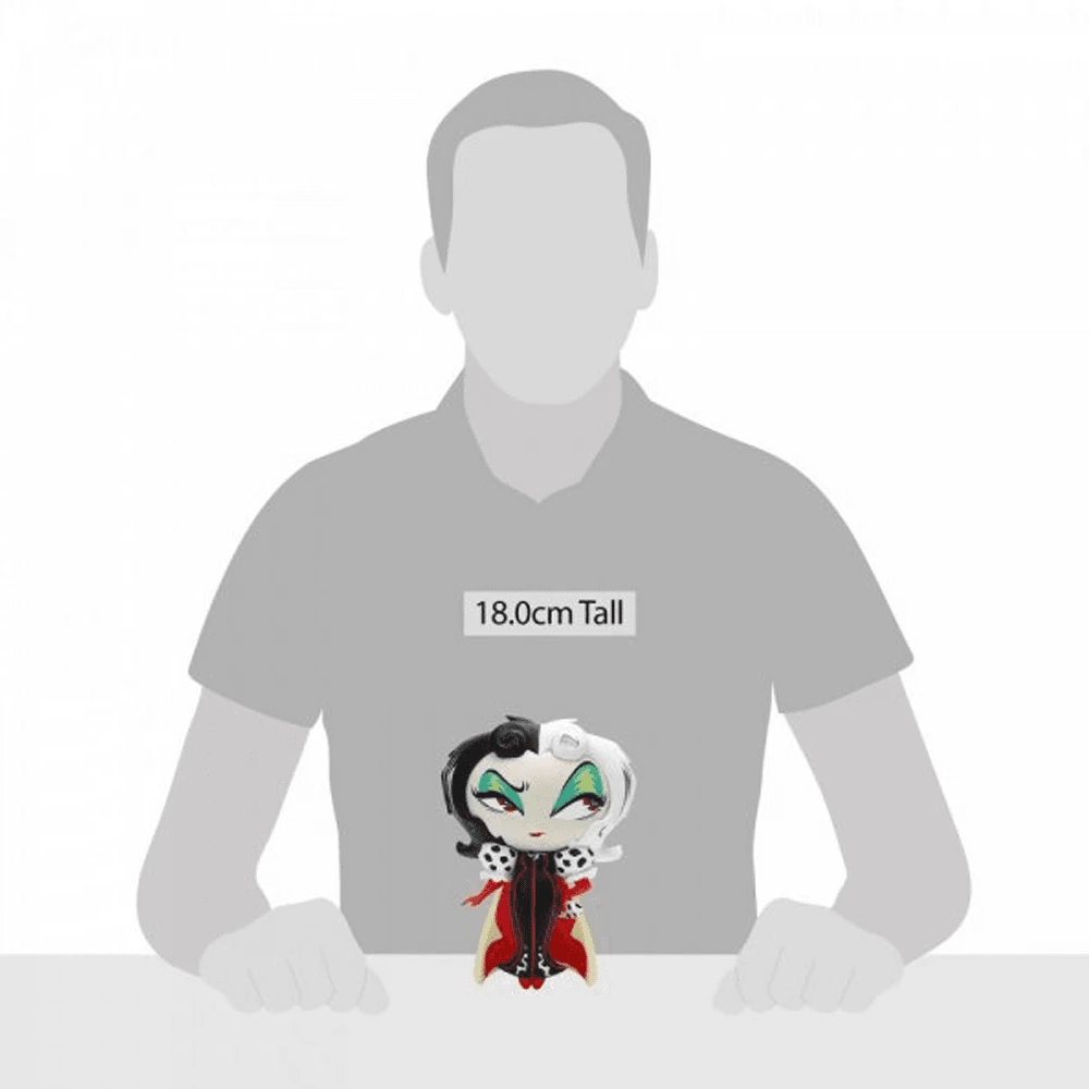 The World of Miss Mindy Cruella De Vil Vinyl Figurine. This Cruella De Vil Vinyl Figurine has been designed in the cartoon style of Miss Mindy. With large bold colours, this Cruella De Vil Figurine is a great addition for any fan of the Evil Villain.